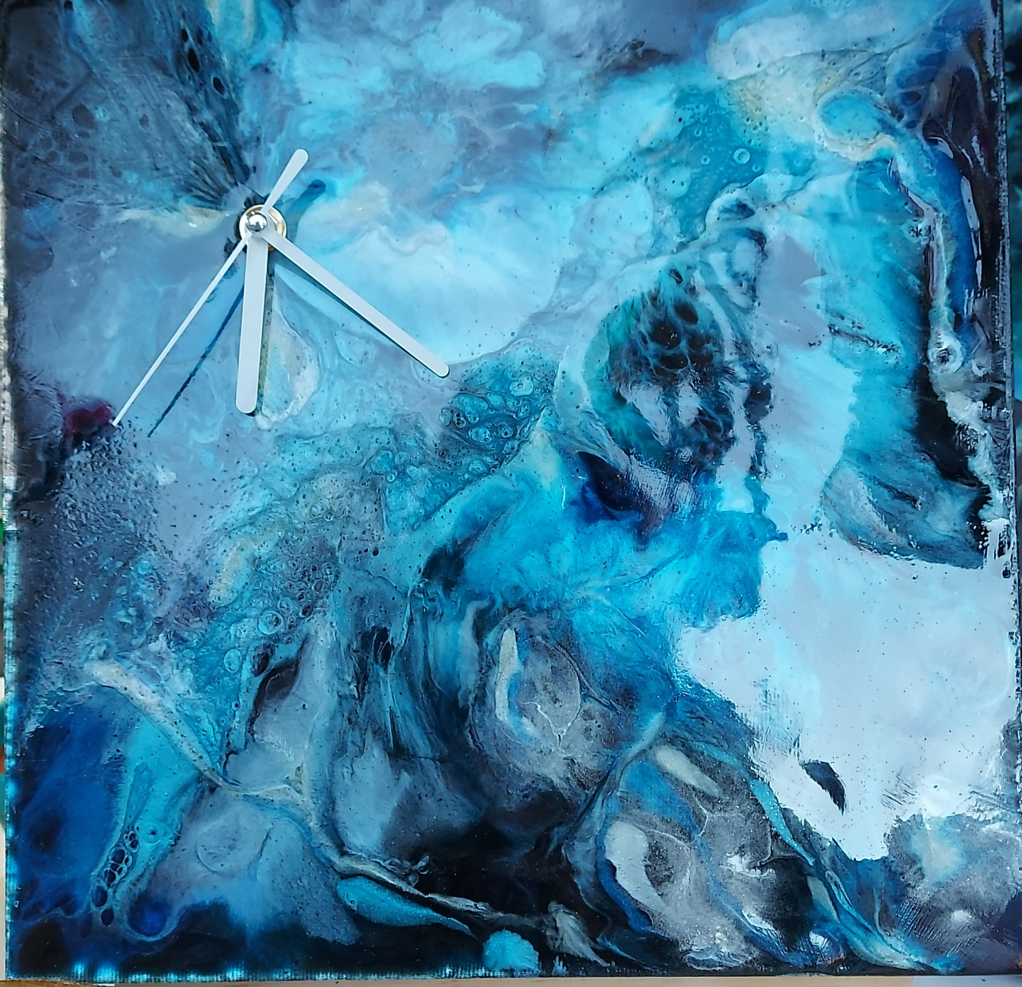 Tela 30 cm x 30 cm, realizzata con acrilici , studiata per inserire meccanismo ad orologio